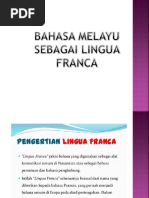 Role of malay language as lingua franca; Sebagai lingua franca dan sumbangannya. Bahasa melayu bahasa lingua franca. Dibahagikan kepada tiga tahap, iaitu bahasa melayu kuno, klasik dan moden. Bahasa melayu sudah menjadi bahasa persatuan ( lingua fraanca ) di nusantara.