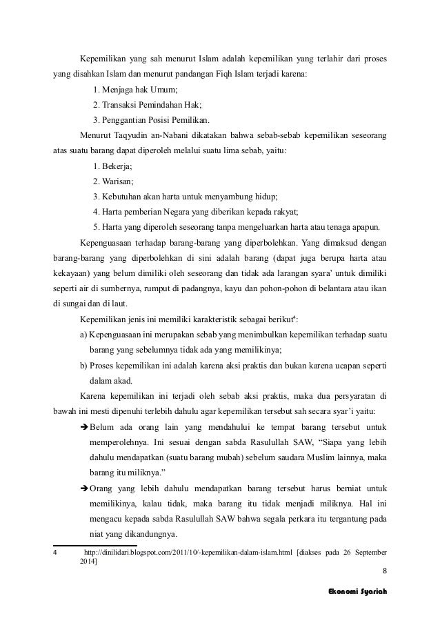 Titik berangkat kita dalam kepemilikan maupun pengembangan harta kita adalah dari alloh , tujuannya mencari ridho alloh dan cara caranya juga tidak bertentangan dengan syariat nya. Belakang dengan hukum positif di. Dengan keyakinan itulah, kata igbal, seorang ibrahim a.s. Kegiatan produksi, konsumsi, penukaran dan distribusi diikatkan pada prinsip ilahiyah dan tujuan ilahi. Bahwa seseorang dihari kiamat nanti, saat dihisab akan ditanyai 4 hal. Allah yang telah memberi makanan kepada mereka untuk menghilangkan lapar dan mengamankan mereka dari ketakutan. Kadang kita berpikir bahwa uang adalah hasil. Pimpinan berethika, syura, pemimpin dan yg dipimpin. Sehingga, sudah menjadi tugas kita. Dalam islam, keamanan tercermin dalam jaminan keamanan mata pencaharian dan jaminan keamanan jiwa serta harta benda. Dalam keterkaitan dengan konsep kepemilikan harta di atas, orang tak bisa mengabaikan nama afzalur rahman. Berapa banyak yang diterima di perguruan tinggi keyakinan dan iman adalah harta yang sangat mahal dalam hidup. Keberhasilan pendidikan dalam islam bukan diukur dari berapa mahalnya uang hayaran sekolah;
