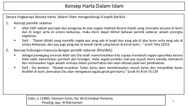 03 KONSEP HARTA & KEPEMILIKAN DALAM ISLAM from image.slidesharecdn.com Huraikan konsep harta menurut islam. Sungguh dalam konteks ini sangat rasional adanya sebuah jawaban terhadap suatu pertanyaan: Secara bahasadalam bahasa arab harta disebul المال diambil dari kata مال, يميل ميلا yang dalam definisi ini sesuatu yang tidak dikuasai oleh manusia tidak bisa dinamakan harta seperti burung diudara, pohon dihutan, dan barang. Dalam islam, keamanan tercermin dalam jaminan keamanan mata pencaharian dan jaminan keamanan jiwa serta harta benda. Konsep kepemilikan harta di islam. Oleh karena itu syariat islam dengan kaidah dan konsepnya akan mengontrol cara untuk mendapatkan harta, menyalurkannya, proses pertukaran. Konsep ketuhanan dalam islam digolongkan menjadi dua: Oleh karenanya, mengenal konsep islam dalam pertukaran harta, baik dengan jual beli atau yang lainnya, termasuk hal yang sangat urgen (penting) yang wajib diperhatikan, khususnya dewasa ini di mana kaum muslimin mulai mau kembali merujuk agamanya.