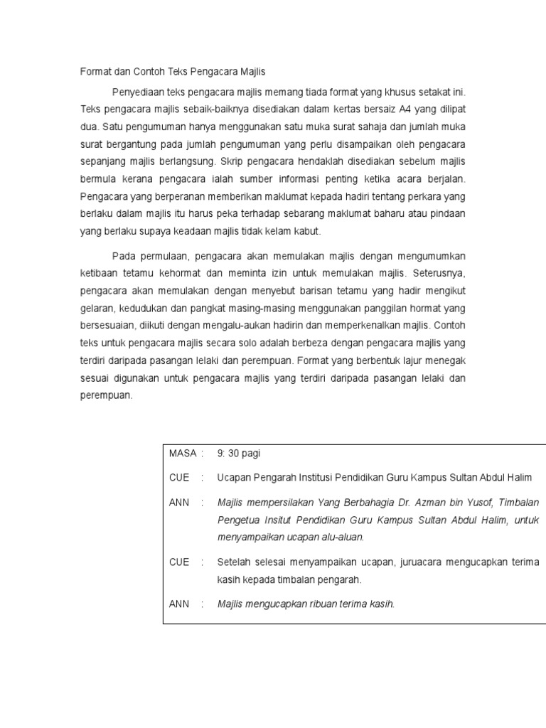 Koleksi Teks Pengacara Majlis / Format Teks Ucapan Pengacara Majlis - UCAPANKU / Sesungguhnya kita hanya mampu merancang dan dialah yang menentukan segalanya.. Dapatkan teks pengacara majlis di sini. Teks pengacara majlis graduasi 2019. Klik link di bawah untuk download himpunan teks pengacara majlis. Koleksi teks pengacara majlis yang amat berguna kepada para guru di sekolah. Untuk makluman semua, teks pengacara majlis ini disediakan untuk majlis perpisahan mantan guru penolong kanan sekolah ieqa, sk temenggong abdul rahman 2.